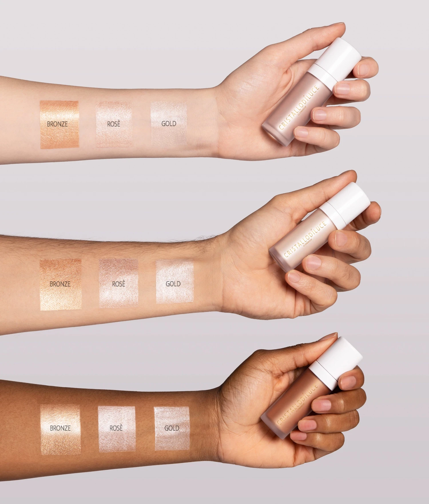 CRISTALLO DI LUCE è il mio illuminante liquido disponibile in tre spettacolari colorazioni Gold, Rosè e Bronze, ideali per ogni tipologia di incarnato: I WANNA SEE YOUR HALO!