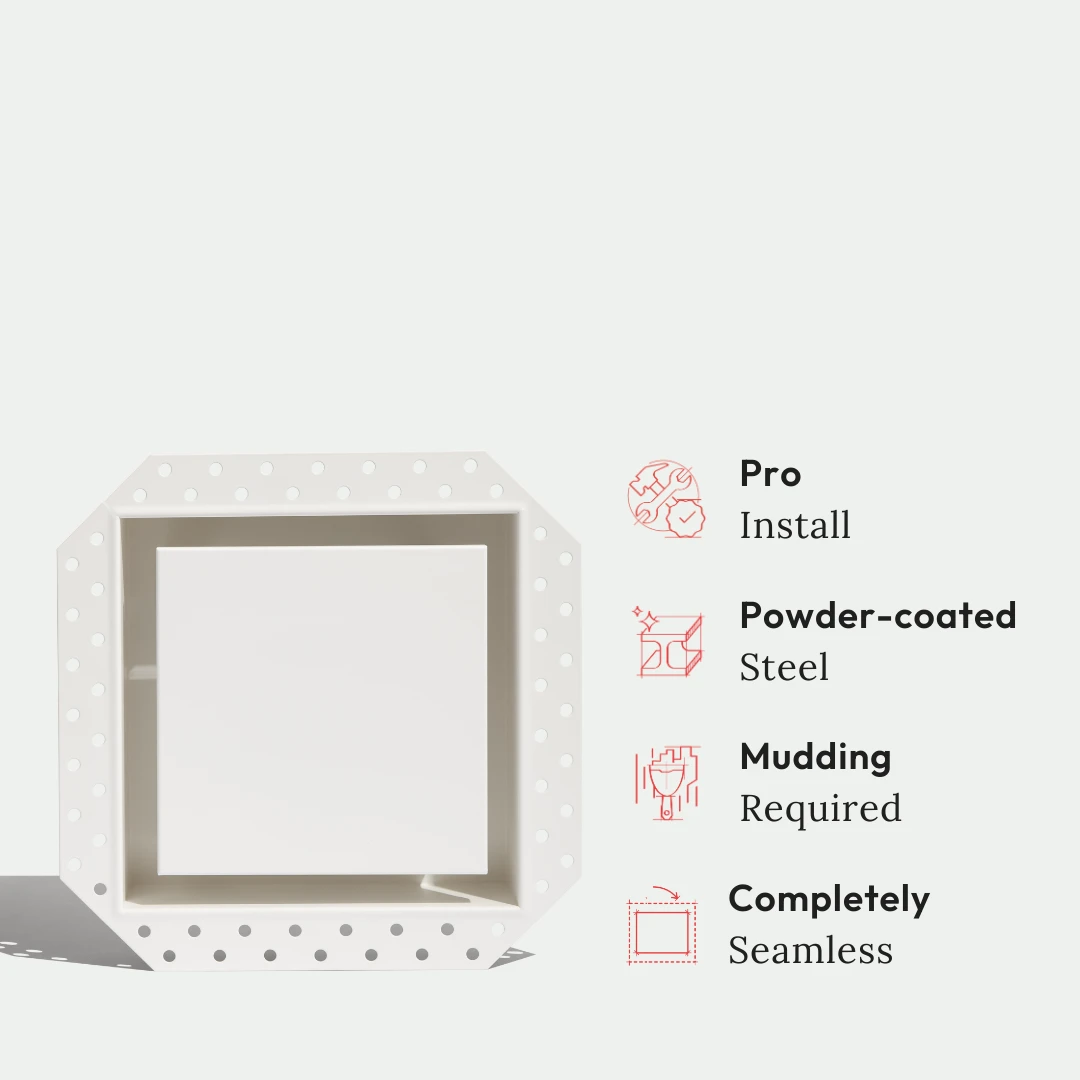Ultra-minimalist device mount for smoke detectors, smart thermostats such as Google Nest and ecobee and other small devices. Customizable, recessed powder-coated steel mount with a flush finish for a seamless design that blends right into the wall. Pro install in 30 minutes.