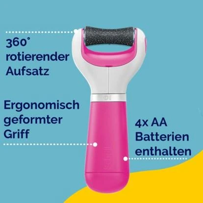 Der pinke ExpertCare Elektrischer Hornhautentferner Pedi kombiniert die attraktive Farbe Pink mit einer Ersatzrolle, die speziell an die Form der Ferse angepasst wurde. Mit dieser Fersenrolle werden erste Anzeichen von rissigen Fersen effektiv reduziert. Für spürbar und sichtbar glatte und seidig weiche Füsse und Fersen.