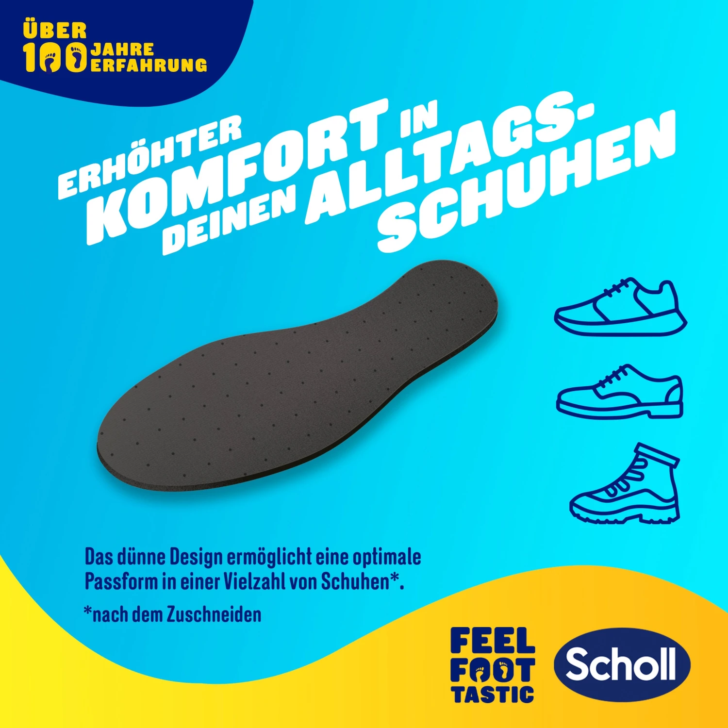 Erlebe die ultimative Lösung zur Bekämpfung von Fußgeruch mit den Scholl Frische Einlegesohlen, Deinem zuverlässigen Verbündeten gegen unangenehme Gerüche. Diese innovativen Einlegesohlen sind mit geruchsneutralisierender Aktivkohle-Technologie ausgestattet, die dafür sorgt, dass Deine Schuhe auch bei Nichtgebrauch frisch bleiben. Sie sind die ideale Wahl für alle, die einen aktiven Lebensstil führen und bieten eine außergewöhnliche Geruchskontrolle für verschwitzte oder stinkende Schuhe. Das fortschrittliche Design der Einlegesohlen absorbiert Schweiß und hält Deine Füße trocken und komfortabel. Darüber hinaus bietet die dreilagige Verarbeitung sowohl einen hervorragenden Geruchsschutz als auch einen angenehmen Tragekomfort, so dass Du jeden Schritt genießen kannst. Vertraue auf die Scholl Frische Einlegesohlen, um Deinen Lieblingsschuhen neues Leben einzuhauchen und Deinen Füßen ein Gefühl von Frische zu geben.
