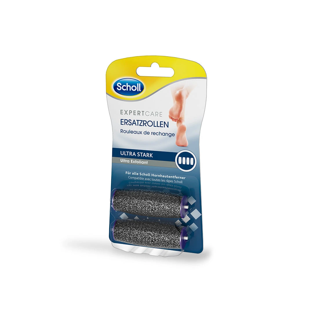 „Entfernt effektiv die härteste Haut, sowohl auf nasser als auch auf trockener Haut. Geeignet für den Einsatz in allen unseren neuesten Scholl elektronischen Fussfeilen.